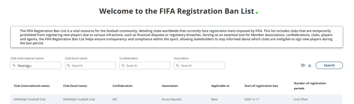 然而,光州FC方面甚至不知道国际足联的纪律处分。国际足联的纪律处分通知函是通过亚足联发送给韩国足协的,韩国足协再将通知书送达光州FC。但光州FC解释称,负责此事的负责人也在休假中,对此并不知情。韩国职业足球联盟也没有收到来自韩国足协的抄送邮件,因此也不清楚此事。他们在去年的冬季转会窗签下了10多名球员,韩国足协也顺利批准了球员的注册。这些新球员参加了13场K联赛、2场韩国杯和亚冠精英赛。