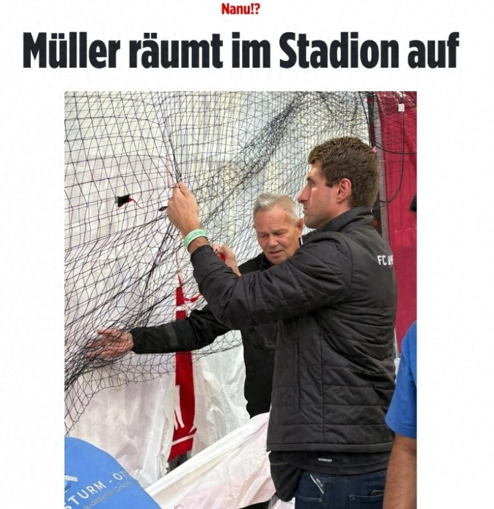 在拜仁5-0大胜汉堡的比赛开赛前鸿泰利创,安联球场内突然出现一位与穆勒极为相似的男子。他身穿俱乐部夹克,正在协助清理南看台死忠球迷刚刚用于TIFO表演的红白塑料膜。